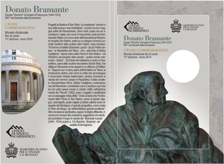 » 2 Euro 2014 500. Todestag Bramante Lazzari delle Penne «